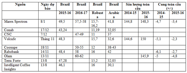 Dự báo sản lượng cà phê Brazil và thế giới