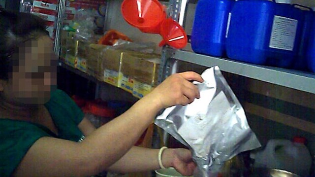 Tuy nhiên, vị này từ chối tiết lộ nguồn gốc các loại hóa chất này dù hầu hết các chai lọ, bịch nilông đều có chữ Trung Quốc.